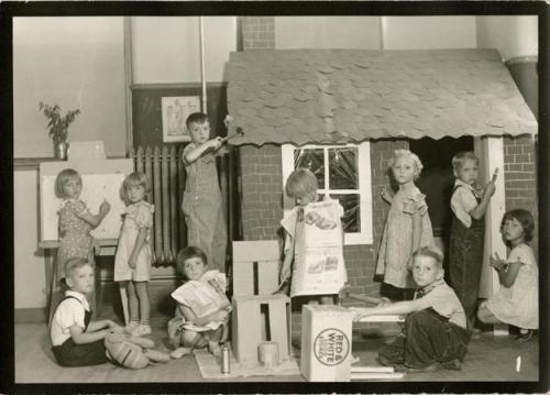 Jordan School District [01] Photo shows children playing in a kindergarten classroom at unidentified school in the Jordan School District